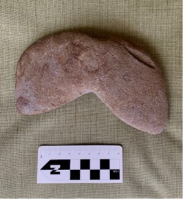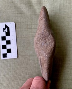 Recientemente recibí un correo electrónico de alguien en Mechanicsville, un área ubicada justo al noreste de Richmond en el condado de Hanover. Mientras caminaban por el bosque detrás de su casa después de una lluvia, encontraron una punta de piedra y una piedra trabajada que sobresalía del suelo arenoso de su propiedad. Levantaron los objetos y se dieron cuenta de que tenían dos artefactos únicos. Se pusieron en contacto con el archivista del DHR, Quatro Hubbard, para pedirle consejo. Les recomendó que se pusieran en contacto conmigo.