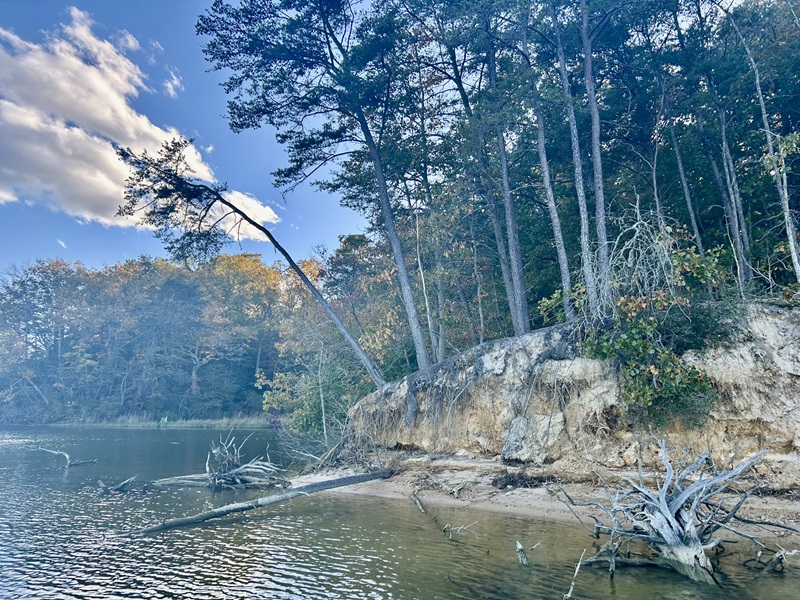 Gran parte del trabajo de campo se lleva a cabo durante las mañanas frías y las tardes ventosas, pero las recompensas son abundantes. Balsas de cisnes, puestas de sol de color durazno y remolinos de hojas otoñales en el agua son recordatorios constantes de la belleza natural de la bahía. Con pocas excepciones, el estudio se realiza desde el agua, donde el barco de reconocimiento puede merodear por los bancos y la costa para examinar los patrones dinámicos de erosión y qué recursos se vieron afectados. Si ve un esquife de color verde azulado bordeando la costa como una badana, puede ser el equipo de encuesta. Como arqueólogo subacuático del estado de Virginia, unirme a este trabajo de campo fue una excelente experiencia que me permite conocer mejor la Bahía. A diferencia de otros proyectos en los que un solo sitio es el foco y el tiempo en el agua es más un viaje, el Shoreline Survey requiere una profundidad de tiempo en el campo que revele matices y patrones sutiles. Los hombres del agua y nuestros antepasados en la bahía lo sabían. Compartir esa misma experiencia es invaluable.