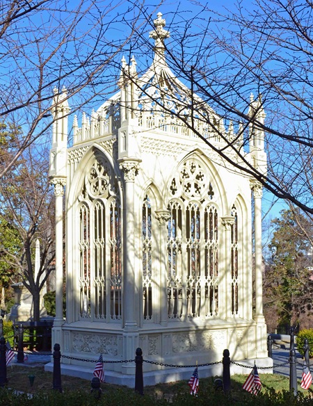 Una fotografía de la tumba de James Monroe en aproximadamente 2018, tras la restauración. Foto de Calder Loth.
