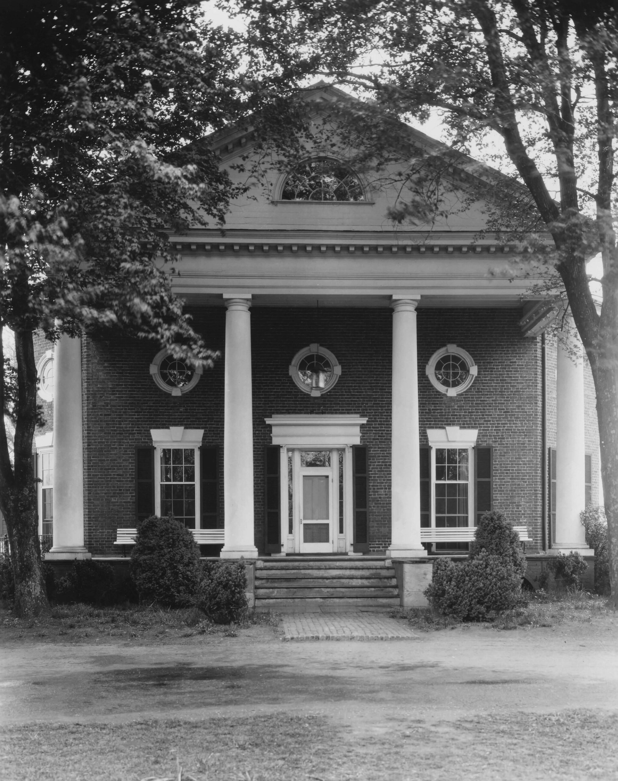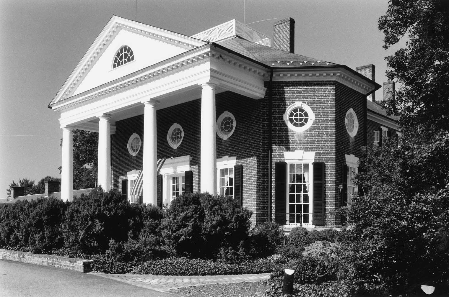 Thomas Jefferson diseñó el ala octogonal alargada de la casa de Farmington en el condado de Albemarle para su amigo George Divers. Dominada por un pórtico toscano y ventanas de ojo de buey, el ala se completó en 1802 siguiendo los dibujos de Jefferson, conservados en la Sociedad Histórica de Massachusetts. La sección original, una típica vivienda georgiana tardía de corredor lateral, probablemente se erigió hacia el ca. 1785 luego de la compra de la propiedad por parte de Divers. En 1927 la casa, junto con sus extensos edificios de servicio y algunos 350 acres de tierras de cultivo al oeste de Charlottesville, se vendió a Farmington, Inc., una compañía de desarrollo que convirtió la propiedad en un club de campo. El club remodeló el interior de la sección de Jefferson eliminando las particiones y los niveles del piso instalados en 1852,54 por el general Bernard Peyton, convirtiendo el ala en una sola gran sala de recepción. Aunque Farmington recibió extensas adiciones, la porción original conserva gran parte de su sabor histórico.