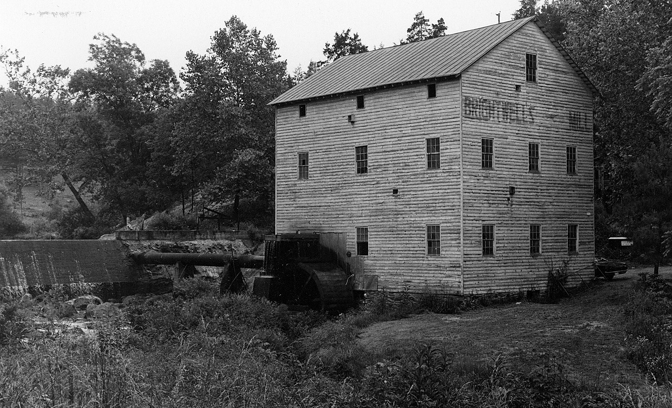 Durante más de 150 años, el Complejo de Molinos de Brightwells contribuyó a la producción y el procesamiento comercial de granos en el condado de Amherst, sirviendo como complemento de otros molinos cercanos. El punto focal de las granjas circundantes durante la primera mitad20siglo, Brightwells fue uno de los pocos molinos en funcionamiento disponibles para los agricultores en Amherst y los condados adyacentes. En la década 1960, también fue uno de los últimos molinos impulsados por agua en el condado. William Burford construyó el molino original antes de 1826 y un ca. 1826 casa de troncos que más tarde se incorporó a la casa del molinero existente. El molino funcionó durante todo el siglo 19bajo sucesivos propietarios que ampliaron el complejo. En 1942 una tormenta causó una inundación que rompió la presa de tierra y troncos del siglo 19del molino y arrastró el molino y otros edificios, dejando solo las piedras y la rueda del molino. Poco después, se recuperaron materiales del molino anterior para reconstruir un aserradero. La madera se aserró en el lugar y se construyó un nuevo molino de granos. El entonces propietario, Harmon Brightwell, construyó nuevos edificios en la propiedad y remodeló y amplió la casa del molinero. Brightwells Mill dejó de procesar granos para el consumo humano en 1965.