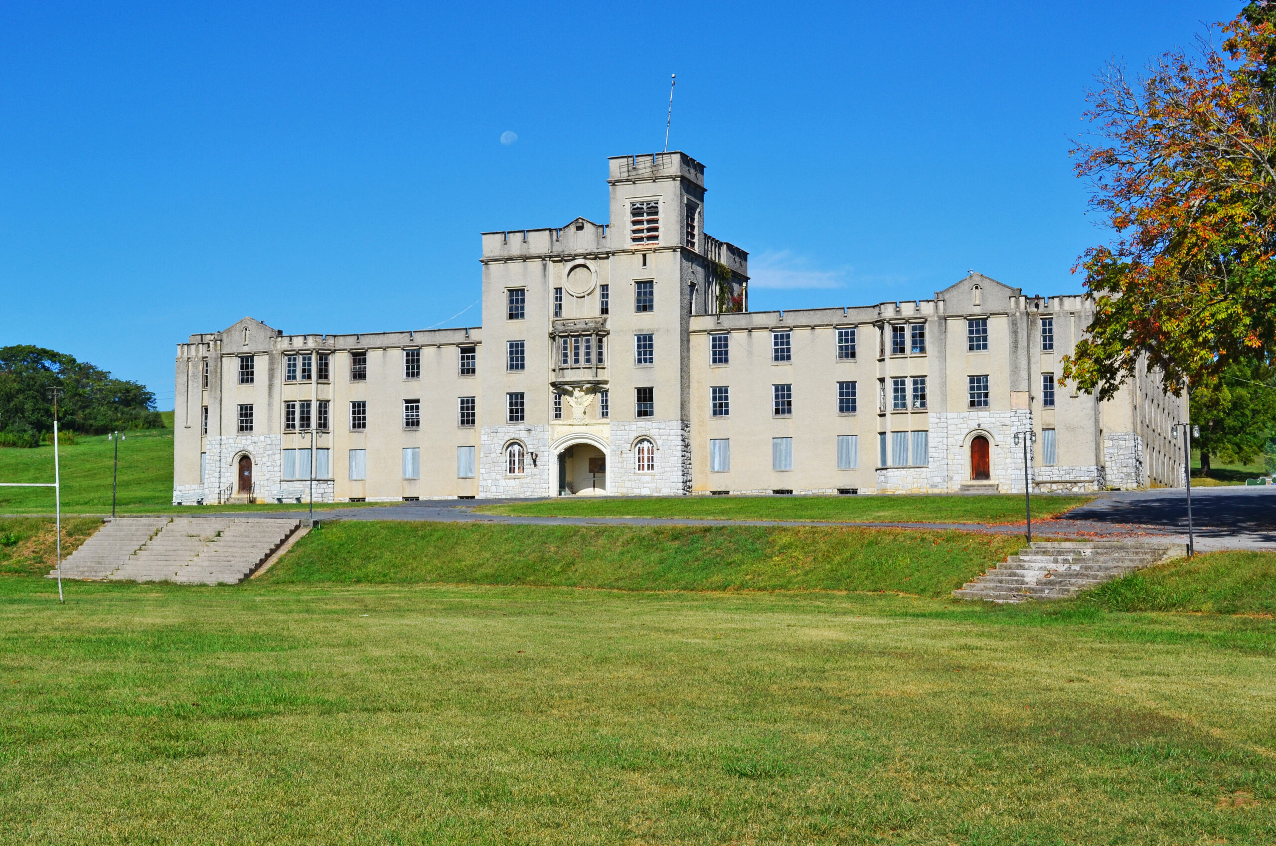 La Academia Militar de Augusta fue fundada por el veterano confederado y delegado estatal Charles Summerville Roller en 1879 en Fort Defiance, al norte de Staunton en el condado de Augusta. Hasta que cerró en 1984, fue la escuela preparatoria militar más antigua de la Commonwealth. La característica arquitectónica dominante de la escuela es el cuartel principal de estuco, diseñado por TJ Collins e Hijos de Staunton en un estilo gótico almenado. Completado en 1915, el prototipo fue el cuartel de Alexander Jackson Davis en el Instituto Militar de Virginia. A raíz de la Primera Guerra Mundial y el reporte del general John J. Pershing al Congreso en 1920 recomendando el entrenamiento militar temprano de la juventud estadounidense, la Academia Militar de Augusta formó el primer Cuerpo de Entrenamiento de Oficiales de Reservación Junior de la nación y luego logró una reputación internacional de excelencia en el campo de la educación militar de nivel secundario. Luego de su cierre, el campus fue vendido a la Iglesia Pentecostal Unida Internacional, que lo convirtió en un campamento.