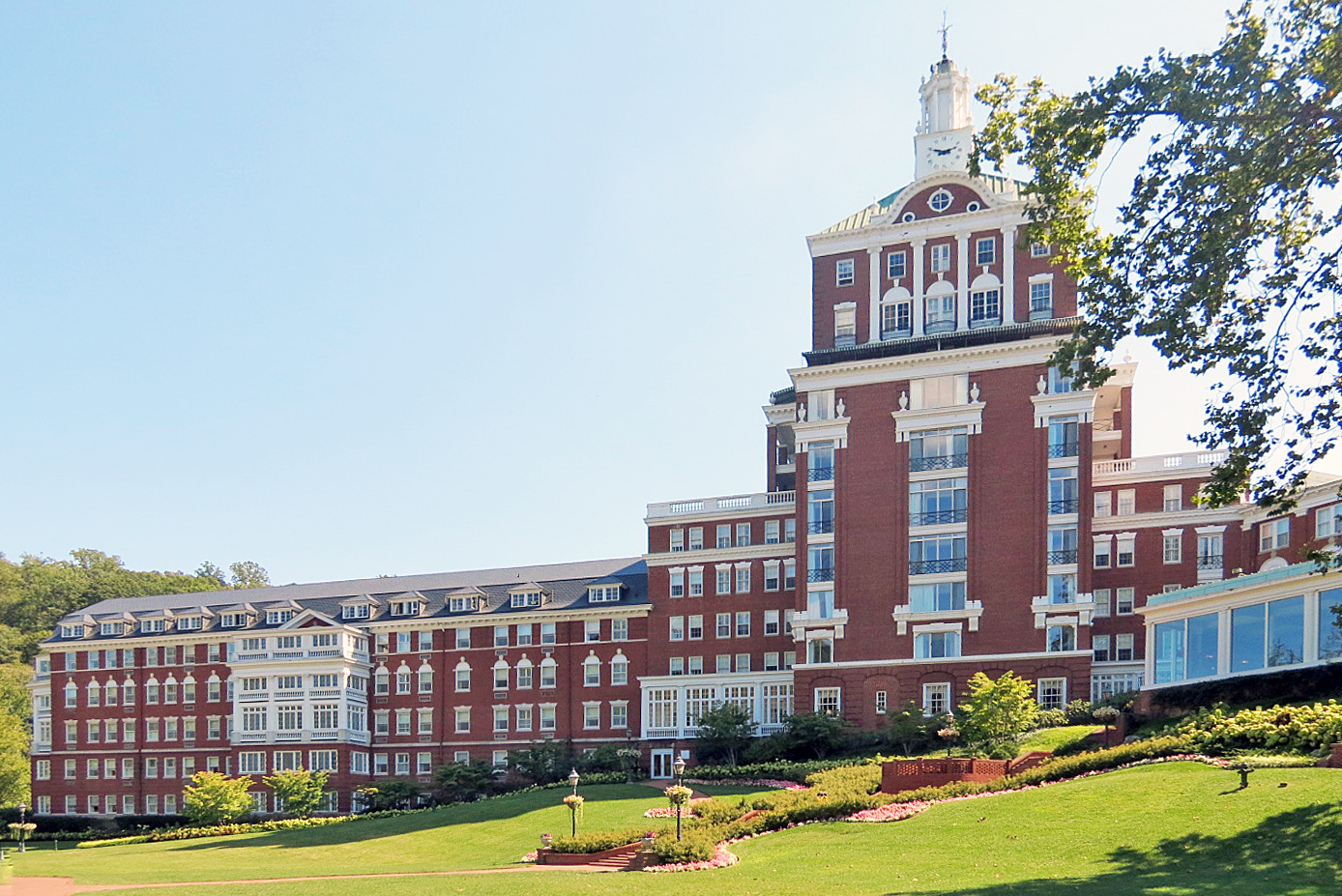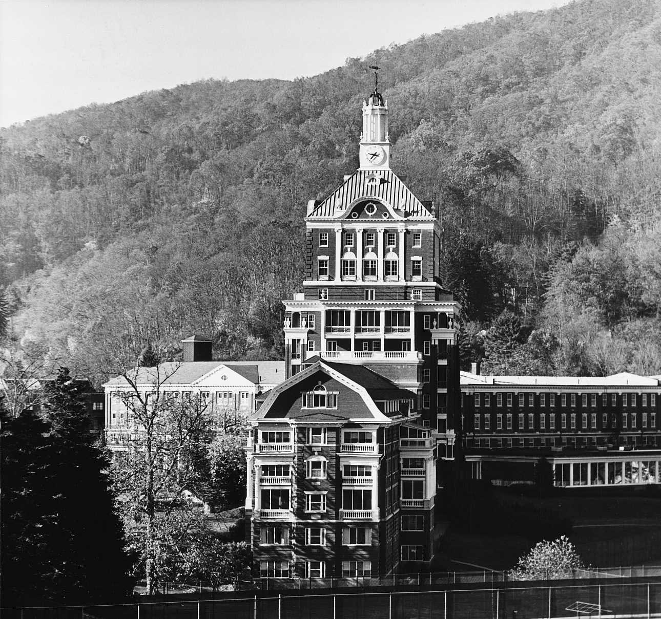Hot Springs, en el condado de Bath, ha estado recibiendo visitantes desde 1766 cuando se construyó aquí un pequeño hotel, conocido como The Homestead. Fue reemplazado por un gran hotel de madera, erigido en etapas en el siglo 19, pero que se incendió en 1901. Solo sobrevivieron el 1892 edificio del balneario, diseñado por Yarnell y Goforth, y varias cabañas. Su reemplazo, el actual Homestead Hotel, es una prodigiosa obra de renacimiento colonial de Elzner y Anderson de Cincinnati. La emblemática torre central fue añadida en 1929 por Warren y Wetmore de Nueva York. Los hermanos Olmsted de Boston ajardinaron los terrenos de The Homestead en los años 19201. Después de Pearl Harbor, el hotel fue utilizado para el internamiento de 363 ciudadanos japoneses. Allí se celebró en 1943la Conferencia Internacional sobre la Alimentación, precursora de las Naciones Unidas. The Homestead continúa siendo un centro turístico conocido internacionalmente; Su célebre campo de golf conserva el primer tee más antiguo del país en uso continuo.