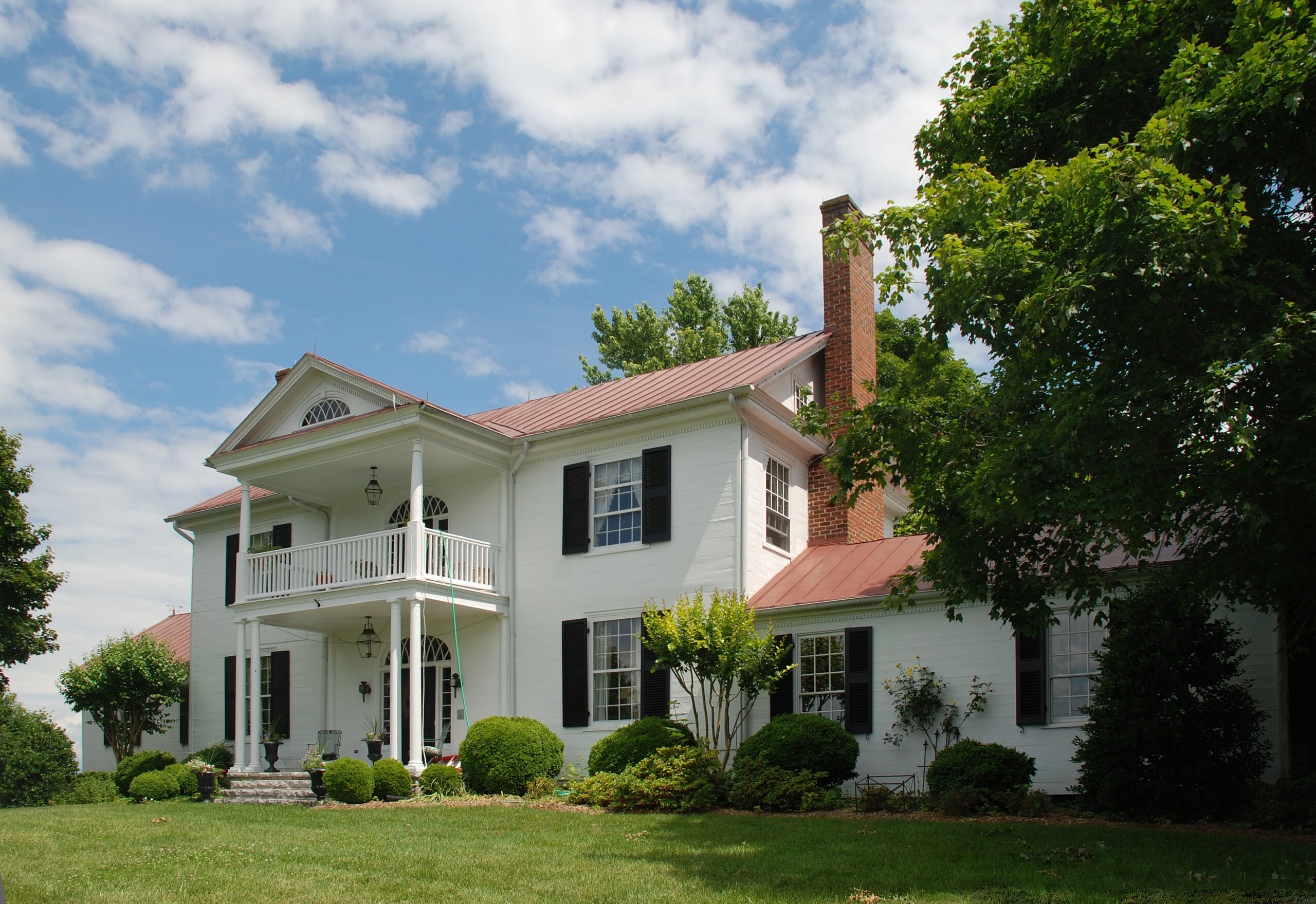En la cima de una empinada colina cubierta de hierba, la granja de estilo federal tardío de Prospect Hill, una de las principales granjas históricas del condado de Botetourt, ofrece vistas panorámicas de las montañas, las tierras de cultivo y la sede del condado de Fincastle. Construido ca. 1837-38 para John Gray, el sheriff del condado, la casa tiene un pórtico de dos niveles y un raro revestimiento de tablas al ras. Destacan especialmente el lucernario de entrada y la luneta del frontón con su animada tracería que se cruza. El interior está decorado con mármol y vetas de madera. La banda estarcida en el salón oeste es un dispositivo decorativo que rara vez sobrevive en las casas de Virginia de la época. El arte local también es evidente en los soportes de escalera tallados de Prospect Hill y la fascia tallada del rellano de la escalera. Las alas de un piso son adiciones posteriores.