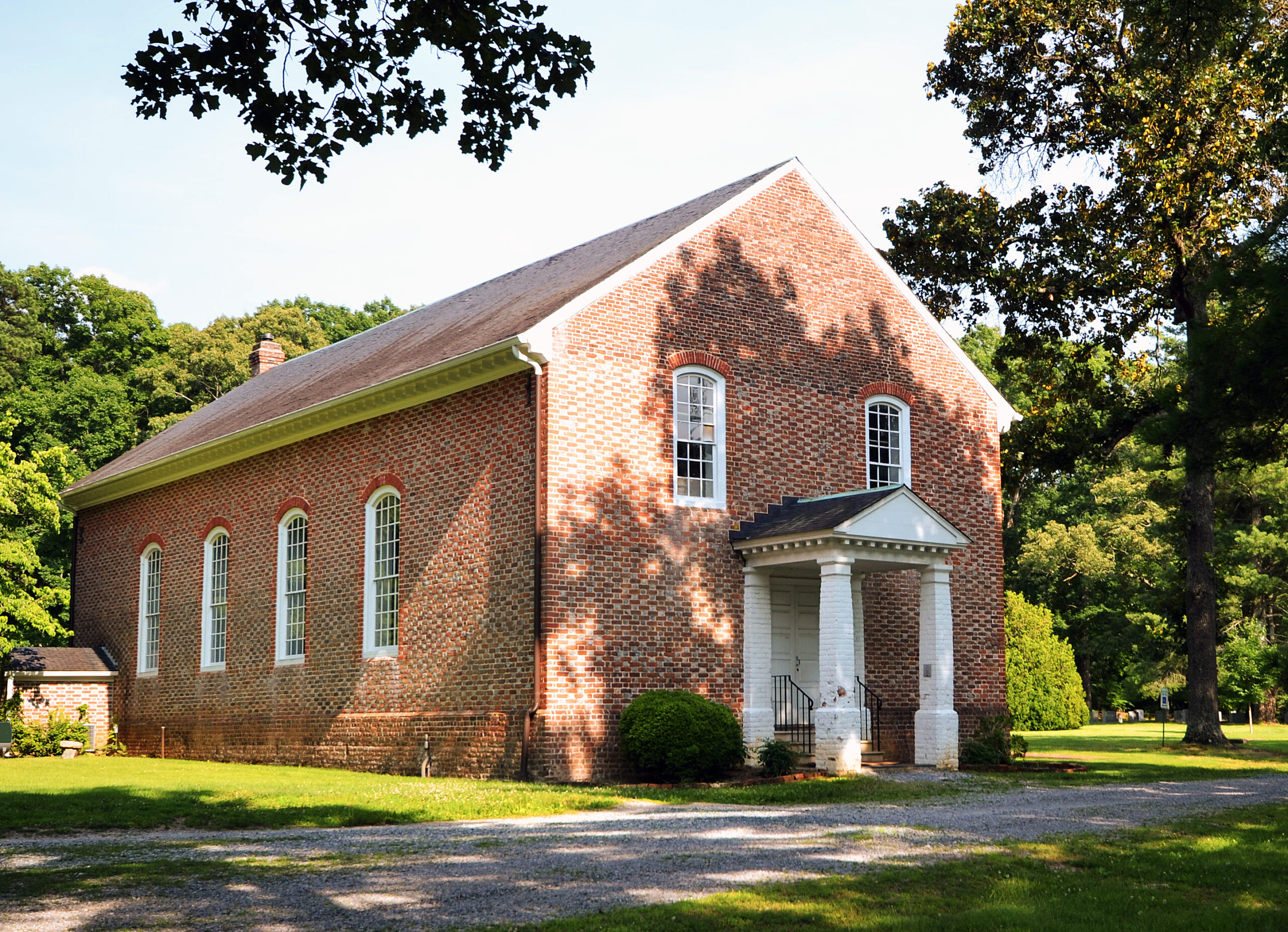 La iglesia de Fork, en el condado de Hanover, fue erigida ca. 1737 como la segunda Iglesia Inferior de la Parroquia de San Martín. La iglesia de Fork deriva su nombre de su ubicación entre los ríos Anna del Norte y del Sur, cerca de donde se unen para formar el río Pamunkey. Típica de las iglesias coloniales rectangulares de Virginia, la iglesia episcopal de Fork tiene una entrada frontal y lateral, sin transeptos y un sencillo techo a dos aguas. Al igual que muchas iglesias construidas en la primera mitad del siglo 18, los muros están colocados en unión flamenca con cabeceras vidriadas. Las ventanas de arco rebajado también son características de principios 18siglo XX. La iglesia de Fork es una de las pocas iglesias coloniales de Virginia que no ha sido vandalizada por las tropas del norte durante la Guerra Civil. Por lo tanto, conserva muchos accesorios antiguos, incluida su galería trasera, partes de los bancos originales y una mesa de comunión temprana. También sobrevive un órgano de tubos 1834 . Patrick Henry, Dolley Madison y Thomas Nelson Page eran fieles habituales aquí. El rector de 18931903 fue el reverendo Sewell S. Hepburn, abuelo de la actriz Katherine Hepburn.