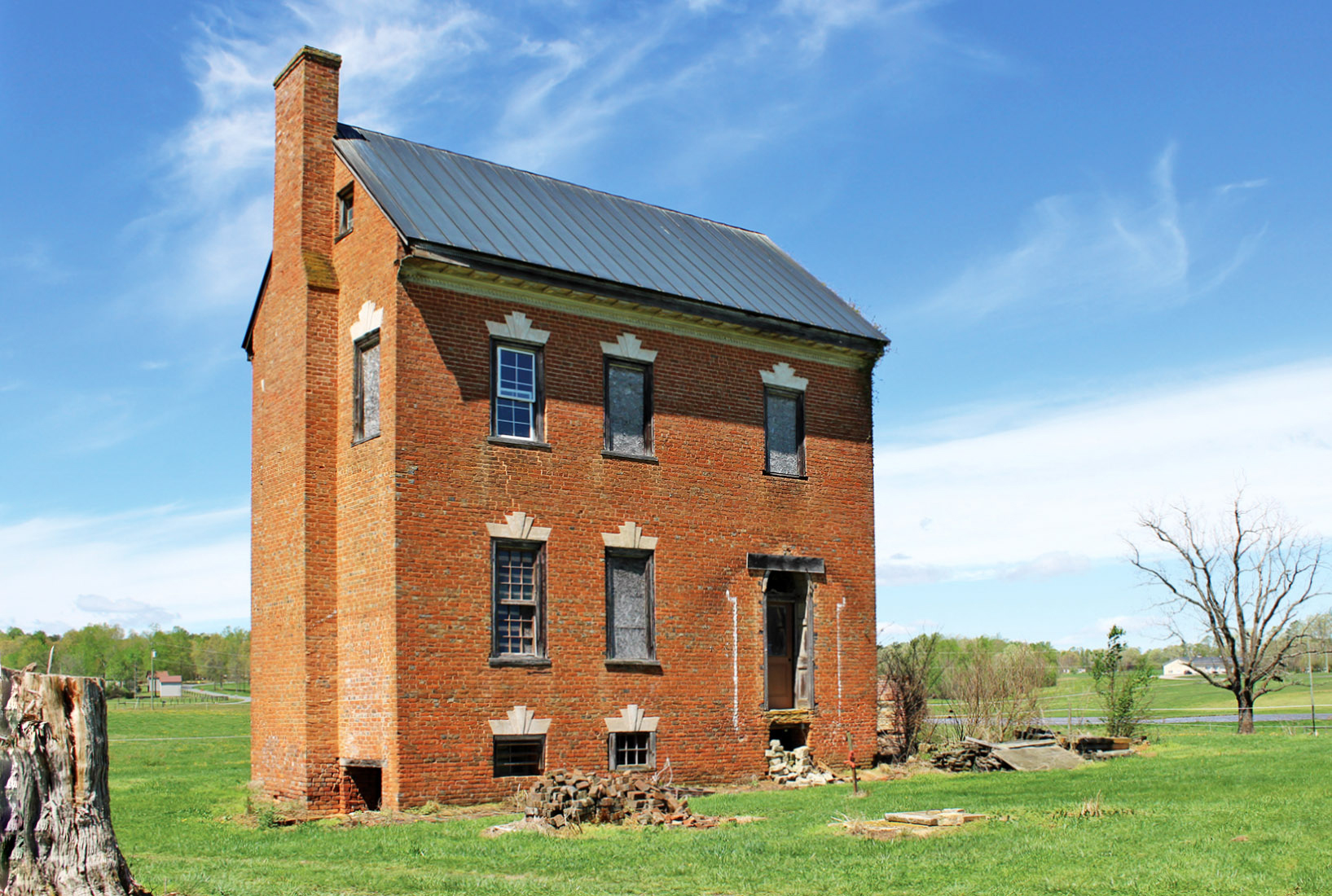 Llamada así por el cercano Little Cherrystone Creek, la granja del condado de Pittsylvania conocida como Little Cherrystone tiene una vivienda con dos secciones distintas y contrastantes de excepcional importancia regional. Su ala de estructura de un piso probablemente estaba en pie antes de que Thomas Hill Wooding adquiriera la propiedad en 1790. Esta sección, un raro ejemplo de la arquitectura vernácula del siglo 18de la zona, se derrumbó por negligencia a finales del siglo 20. A esta pequeña casa, Wooding añadió a principios del siglo 19una sección de ladrillo de dos pisos, una interpretación provincial finamente detallada del estilo federal con paredes de ladrillo flamenco y dinteles y piedras angulares estucadas. La carpintería interior es una de las más interesantes de la región, con repisas intrincadamente talladas, revestimientos de madera y cornisas. Parte de la carpintería de Little Cherrystone conserva un mármol temprano muy elaborado y otras formas de pintura de fantasía. Aunque menos deteriorada, la sección de ladrillo también necesita reparación y mantenimiento.