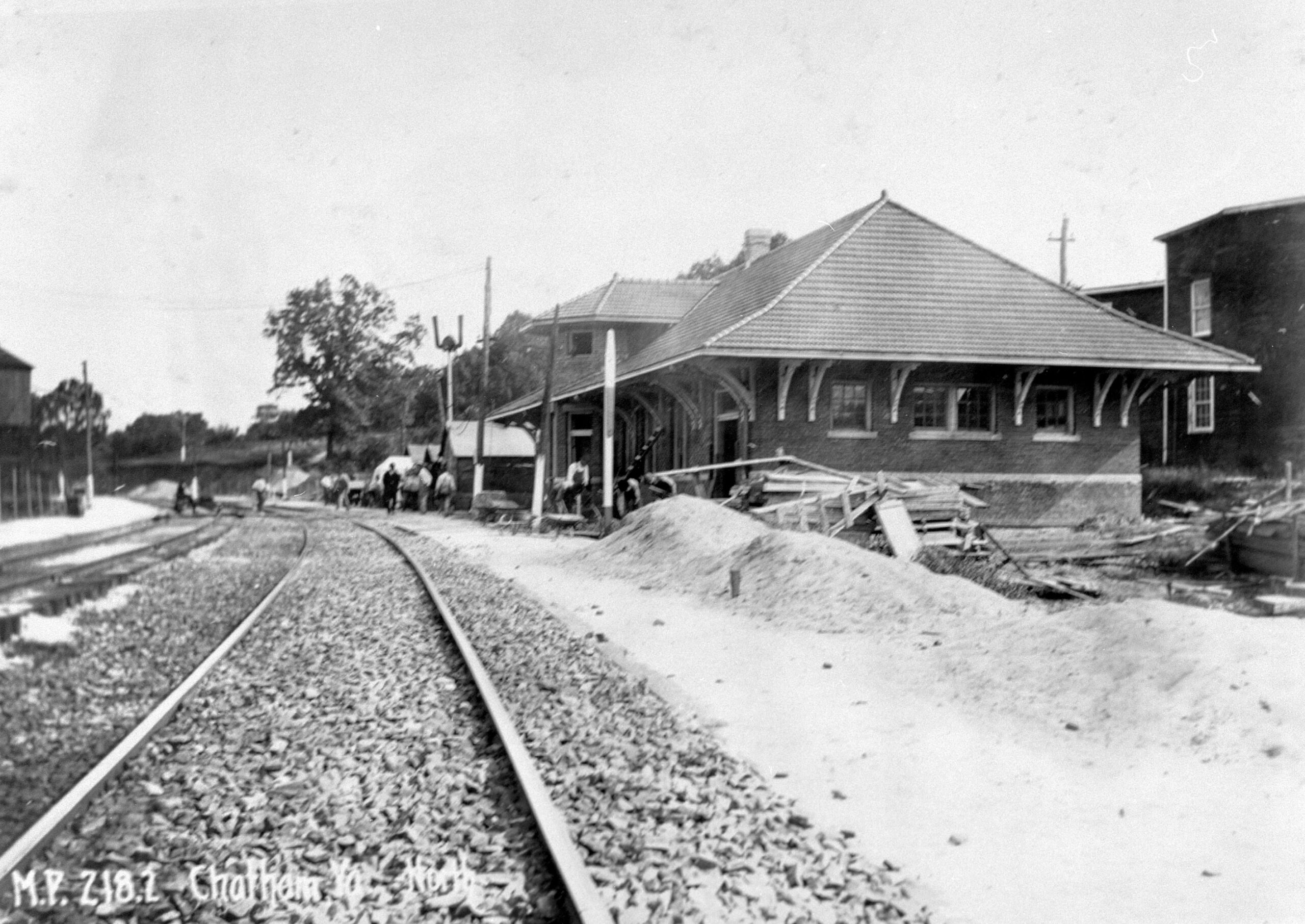 El depósito ferroviario Chatham Southern se construyó entre 1918 y 1919. La estación es un punto de referencia muy conocido, debido en parte a la importancia del ferrocarril en la historia posterior a la1850 de la ciudad de Chatham y la región del condado de Pittsylvania. Como núcleo central de transporte de Chatham y sus alrededores, el depósito desempeñó un papel fundamental en el desarrollo económico de la zona durante la década de 1950. Los negocios locales dependían en gran medida del ferrocarril, ya que el volumen de producción local que salía del depósito crecía durante la primera mitad del siglo 20XX. La estación atendía a pasajeros, incluidos empresarios, soldados (especialmente durante la Segunda Guerra Mundial), y a los internos y profesores de la escuela femenina Chatham Hall, fundada en 1894y de la Academia Militar Hargrave, exclusivamente masculina, fundada en 1909. La estación es un claro ejemplo del estilo ferroviario con influencia del Colonial Revival. Tras casi medio siglo en servicio, la estación cerró al tráfico de pasajeros en 1965, aunque el servicio de mercancías continuó hasta 1975 cuando la estación fue retirada del uso ferroviario por completo. Desde 2001 la estación fue propiedad de la Sociedad Histórica del Condado de Pittsylvania. Se emplearon fondos de subvenciones para rehabilitar el Depósito del Ferrocarril Chatham Southern, que luego fue arrendado por el condado para su sistema de bibliotecas públicas como centro de investigación.